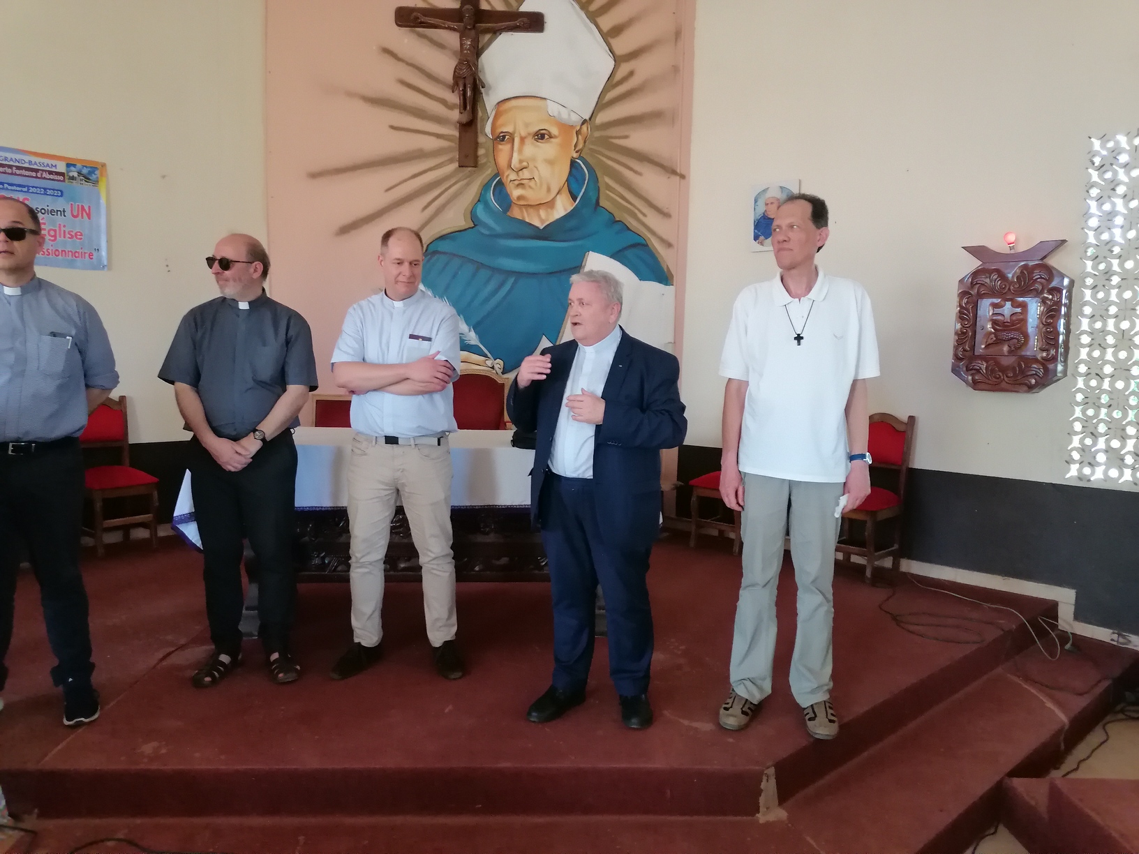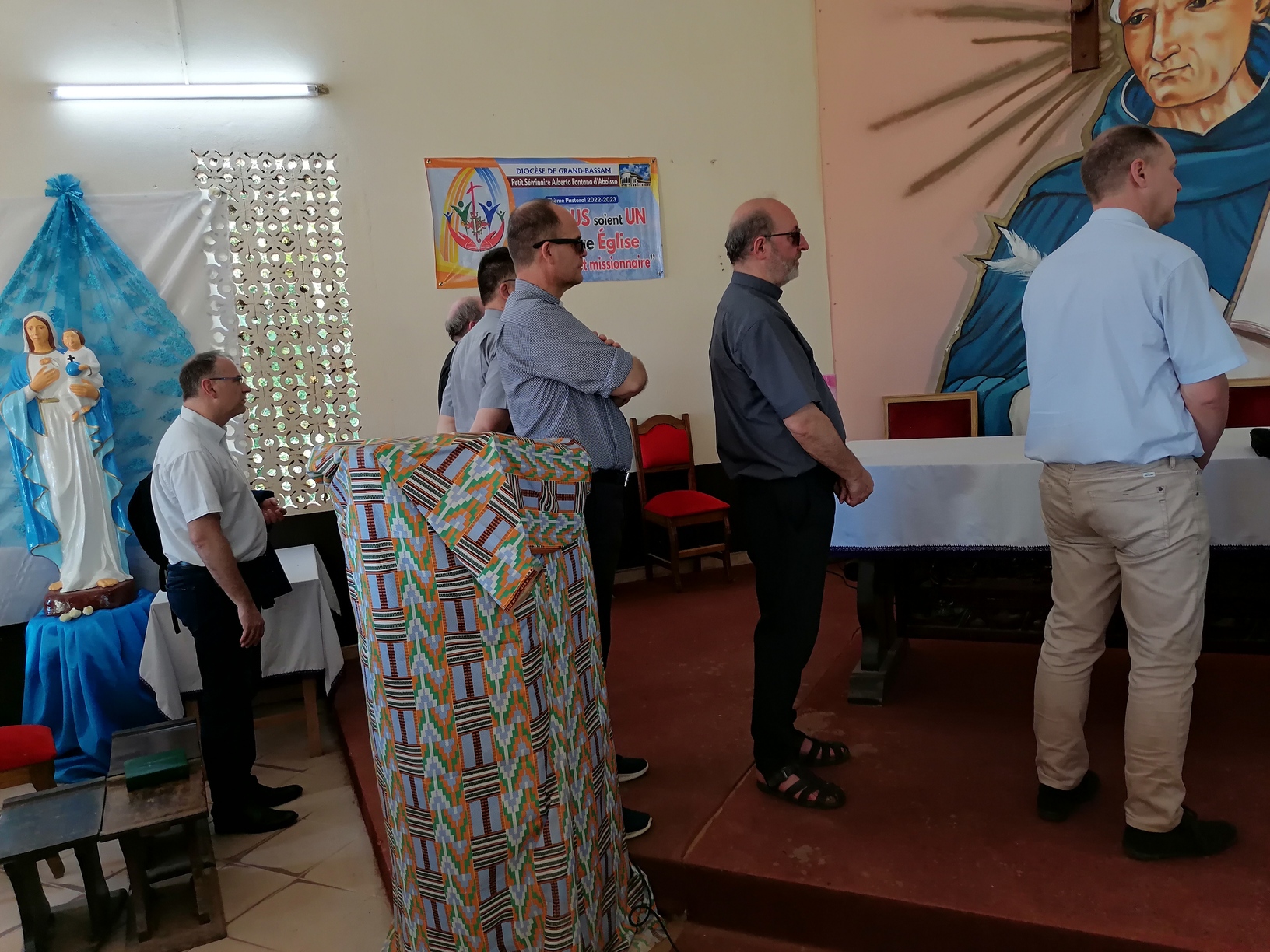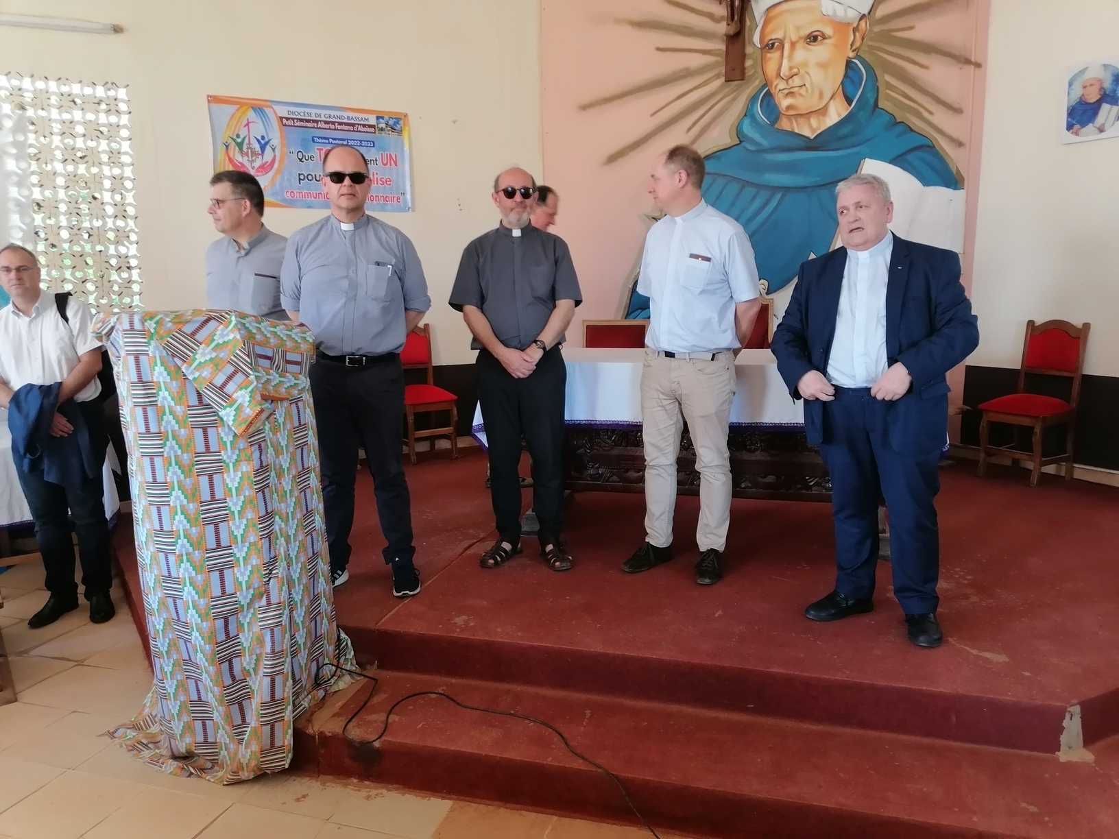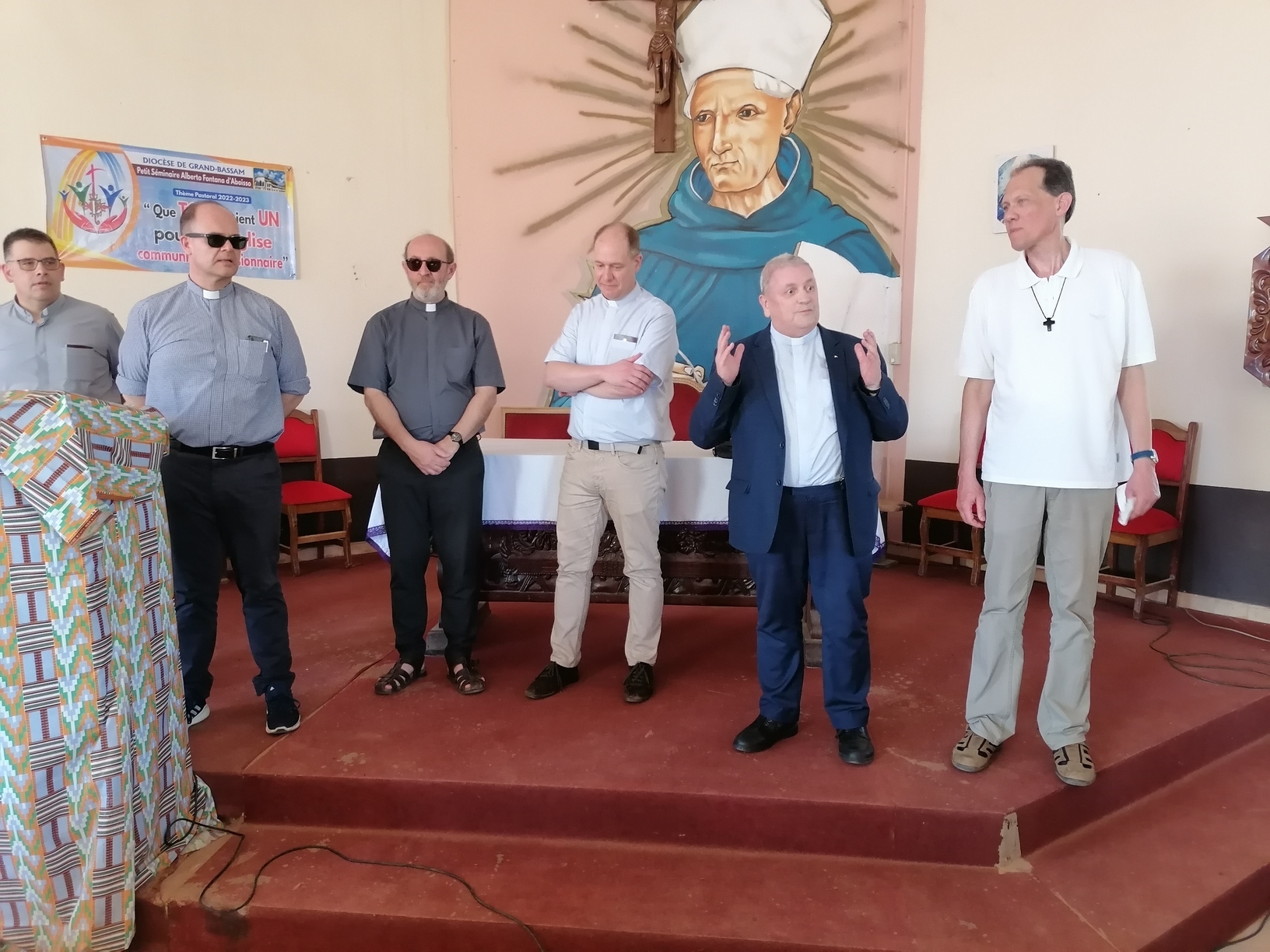 Le lundi 13 Mars 2023, la délégation du clergé de Strasbourg composée du Père Hubert SCHMITT, Vicaire Général, Père René FISCHER, Recteur du Grand séminaire; Père Bernard XIBAUT, Chancelier; Père Marc SCHMITT, Vicaire Épiscopal; Père Christian KAMENISCH, Vicaire Épiscopal; Père Franck GUICHARD, Vicaire Épiscopal; Père Philippe BURGY, Vicaire Épiscopal; et un laïc en la personne de Monsieur Klaus Martin SIMON, délégué diocésain à la Coopération Missionnaire, en visite dans les locaux du Petit Séminaire Alberto Fontana d'Aboisso dans le diocèse de Grand-Bassam en Côte d'Ivoire.