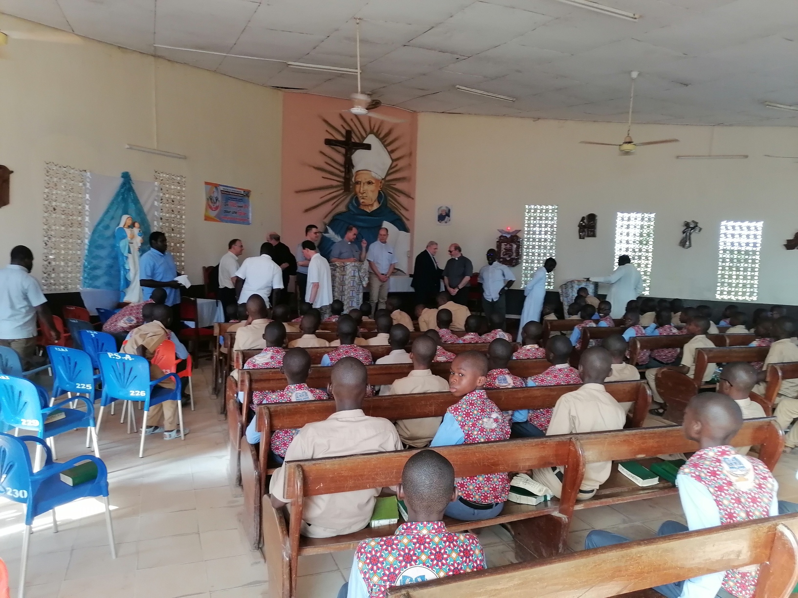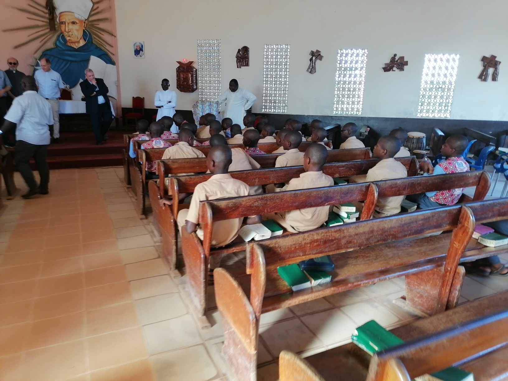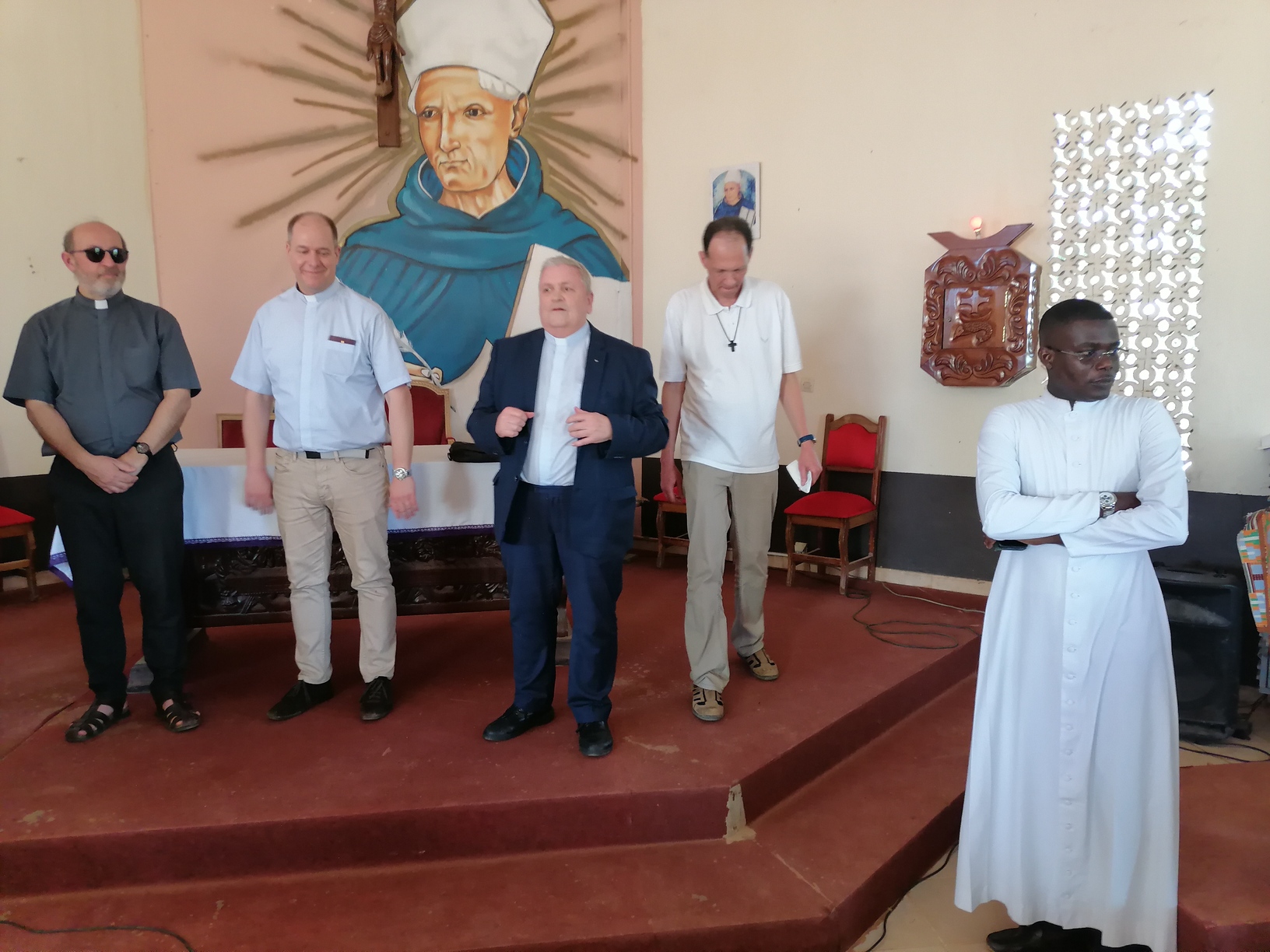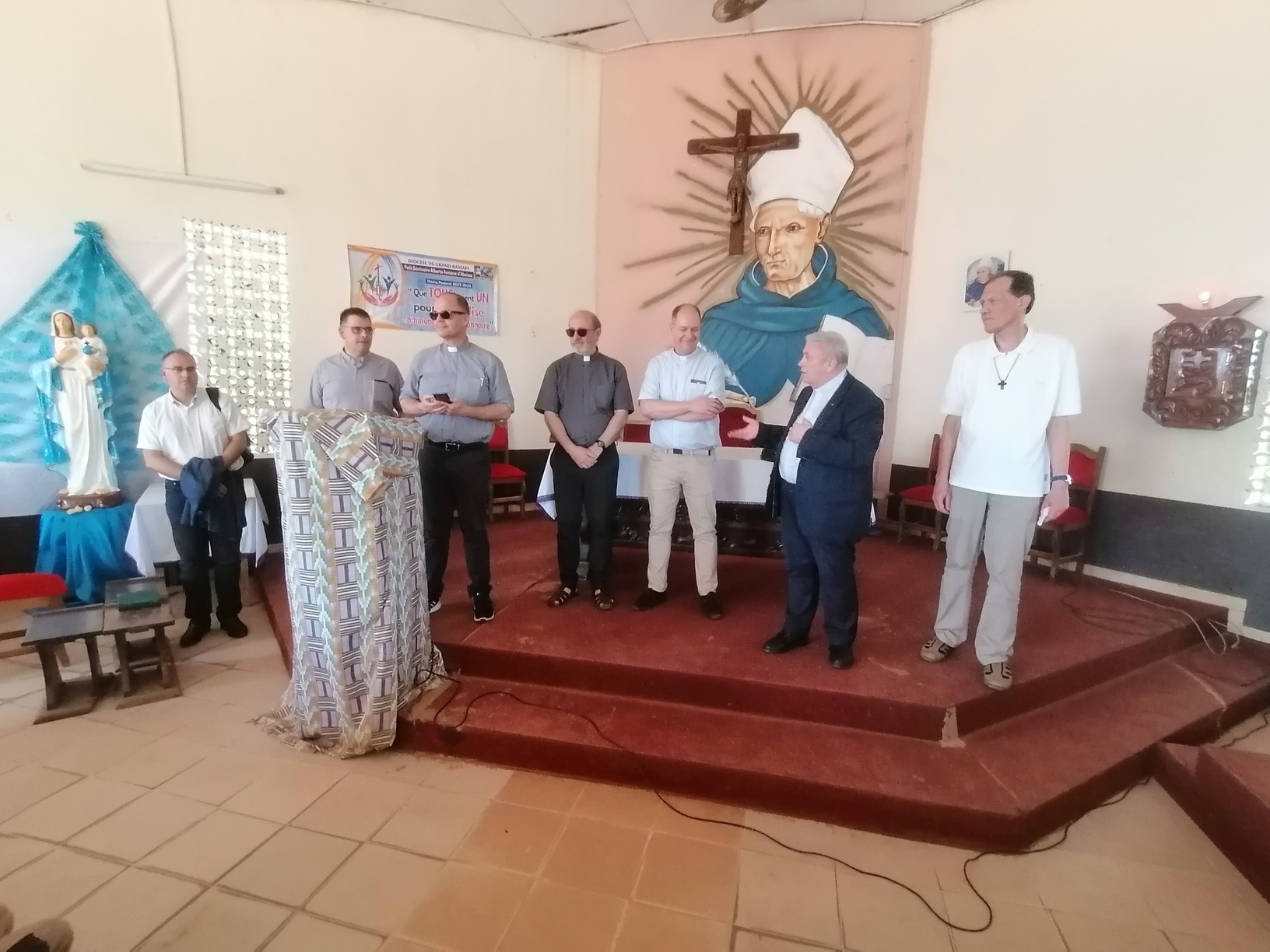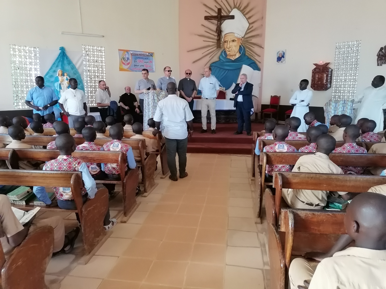 Le lundi 13 Mars 2023, la délégation du clergé de Strasbourg composée du Père Hubert SCHMITT, Vicaire Général, Père René FISCHER, Recteur du Grand séminaire; Père Bernard XIBAUT, Chancelier; Père Marc SCHMITT, Vicaire Épiscopal; Père Christian KAMENISCH, Vicaire Épiscopal; Père Franck GUICHARD, Vicaire Épiscopal; Père Philippe BURGY, Vicaire Épiscopal; et un laïc en la personne de Monsieur Klaus Martin SIMON, délégué diocésain à la Coopération Missionnaire, en visite dans les locaux du Petit Séminaire Alberto Fontana d'Aboisso dans le diocèse de Grand-Bassam en Côte d'Ivoire.