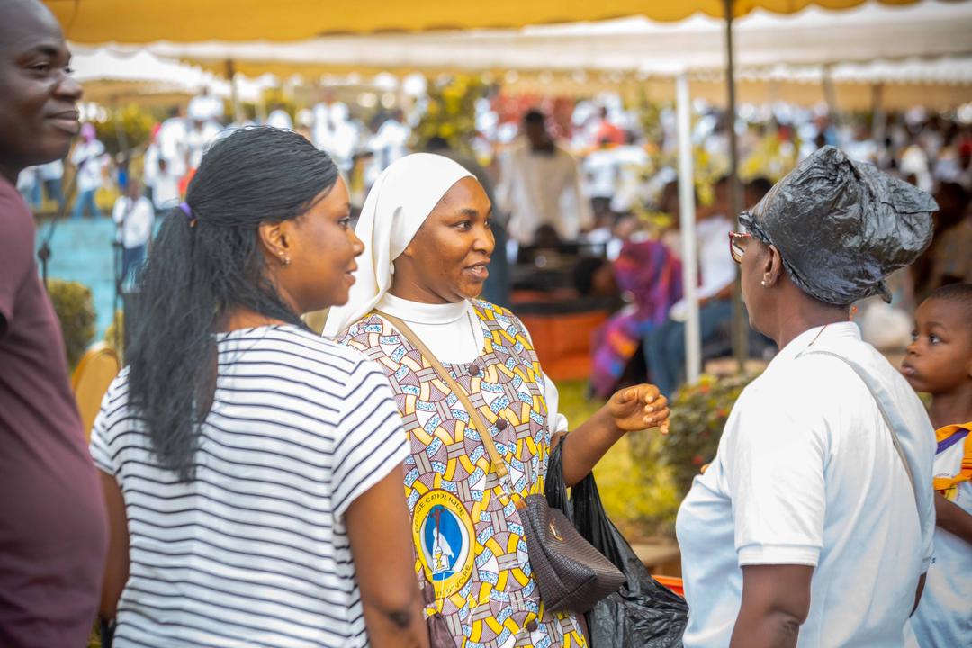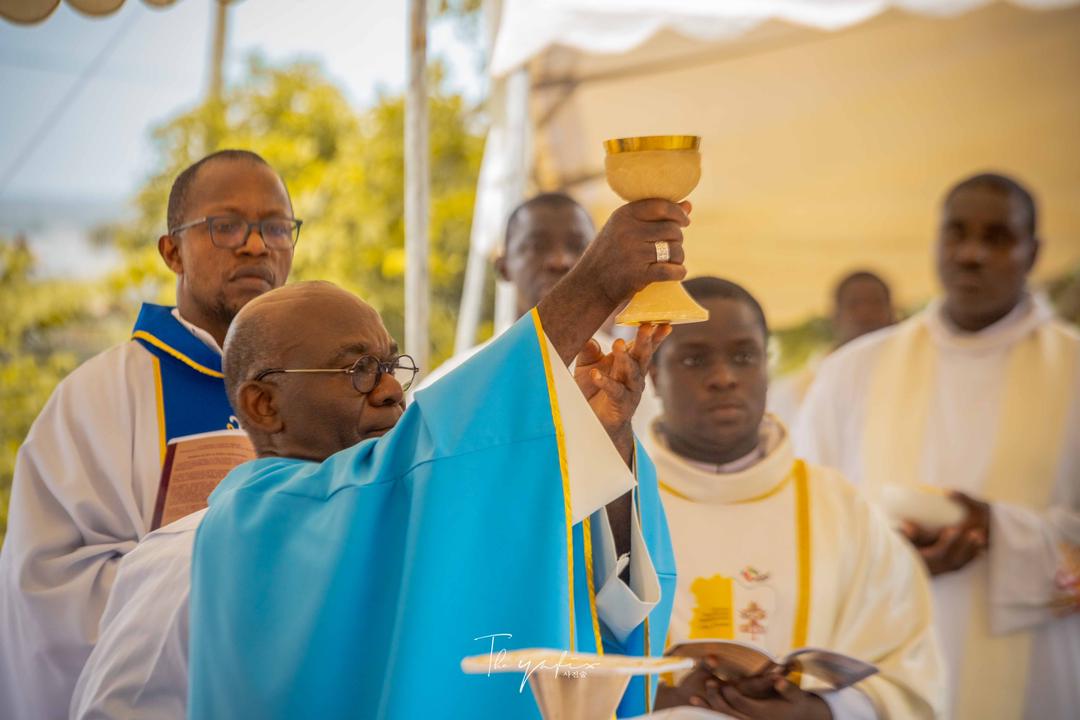Le samedi 25 mars 2023, le Sanctuaire Notre Dame de la garde Bonoua a été le théâtre du Pèlerinage enfant. En effet, plus de 14.700 enfants venus de toutes les contrées de notre diocèse se sont réunis autour de Son Excellence Monseigneur Raymond AHOUA, évêque du diocèse de Grand-Bassam pour vivre le pèlerinage diocésain autour du thème " Moi enfant, je m’unis à mes amis pour la mission de l’Église". Cette journée fut meublée par des temps de marche et de réflexion, d’animation, de mise en commun, de messe et de partage. Au cours de son homélie, Son Excellence Monseigneur Raymond AHOUA a invité les enfants à rester attachés à la Vierge Marie en disant en toutes circonstances << JE VOUS SALUE MARIE>>. Après une prière universelle faite en dans les différents dialectes de notre diocèse, nous avons eu droit à la grande procession d’offrandes. Au titre des allocutions, la présidente diocésaine des enfants Keryan AMOU a remercié l’évêque, les aumôniers et les soeurs conseillères pour avoir permis aux partenaires de vivre ce grand rassemblement. Elle a par ailleurs au nom de l’aumônerie diocésaine félicité les paroisses les plus éloignées de notre diocèse qui font l’effort de toujours participer au pèlerinage diocésain des enfants. À sa suite, le Grand Partenaire, Son Excellence Monseigneur Raymond AHOUA a félicité les partenaires pour leur mobilisation et les aumôniers pour l’organisation de cette grande activité. La journée se termina avec un partage frugal et les délégations prirent la route aux environs de 15h30. Bravo à tous les partenaires pour ce bel esprit missionnaire dans l'unité et la communion!